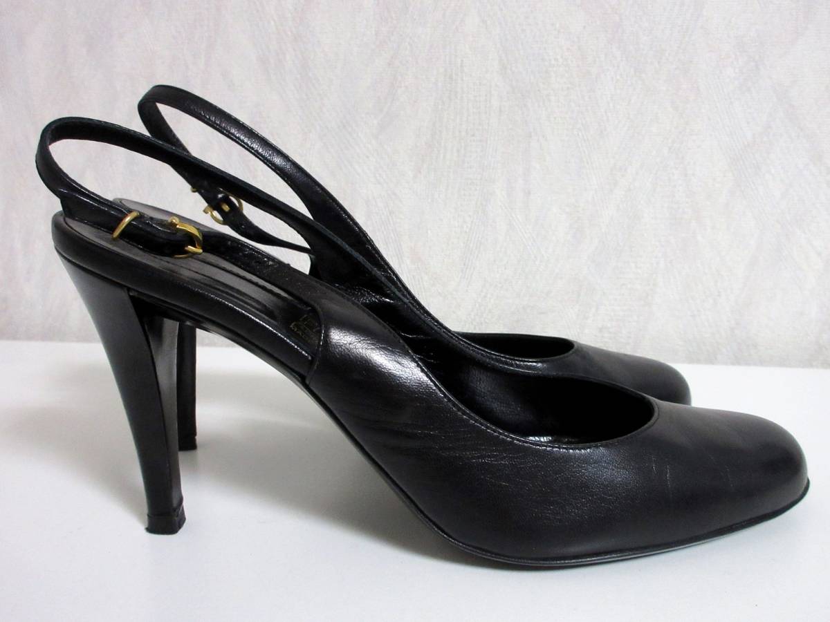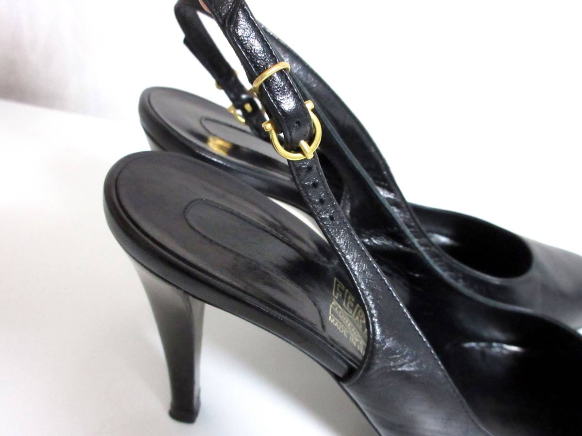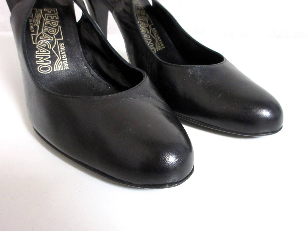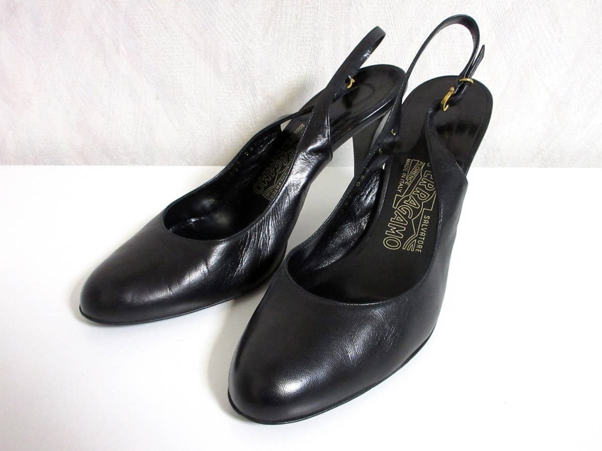サルヴァトーレフェラガモ バックストラップ レザー パンプス 黒 ブラック 6C 北3600
