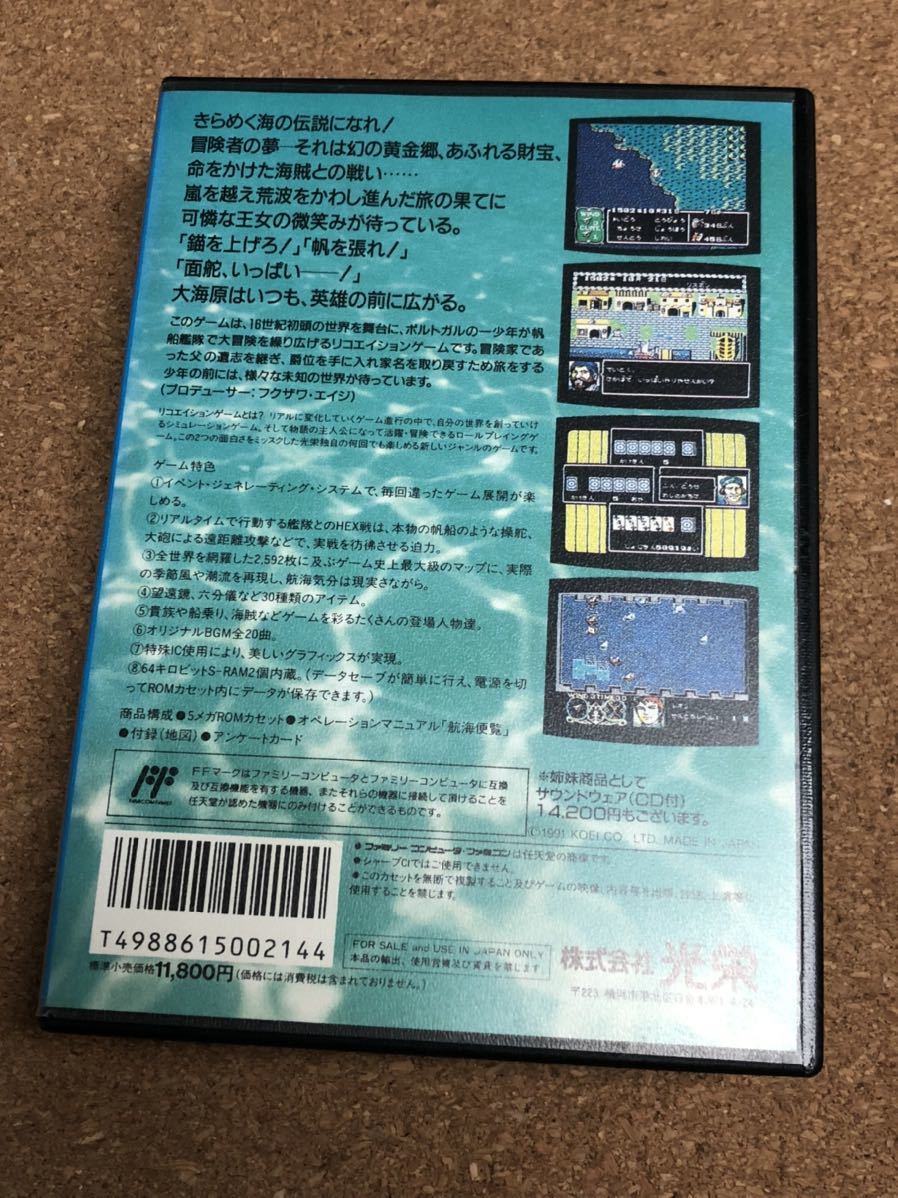 送料無料♪ 箱説付き♪ 電池交換して発送♪ 大航海時代 ファミコンソフト 端子メンテナンス済 動作品