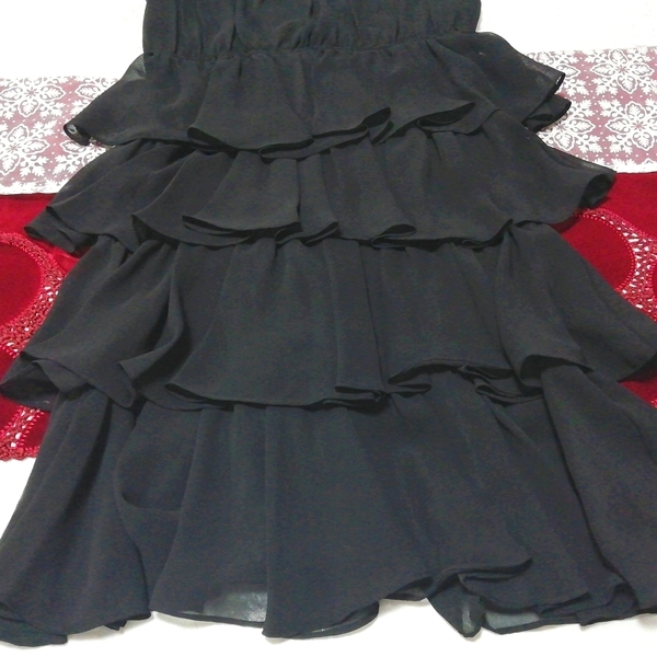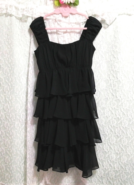 黒段フリルシフォン ノースリーブ ネグリジェ ハーフワンピース Black frill chiffon sleeveless negligee half dress