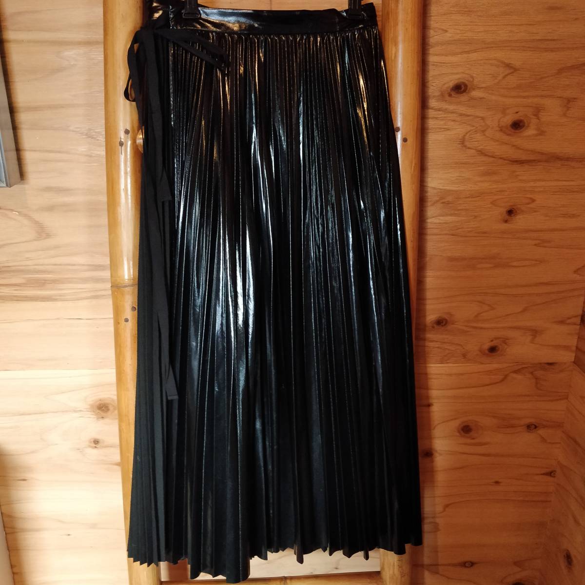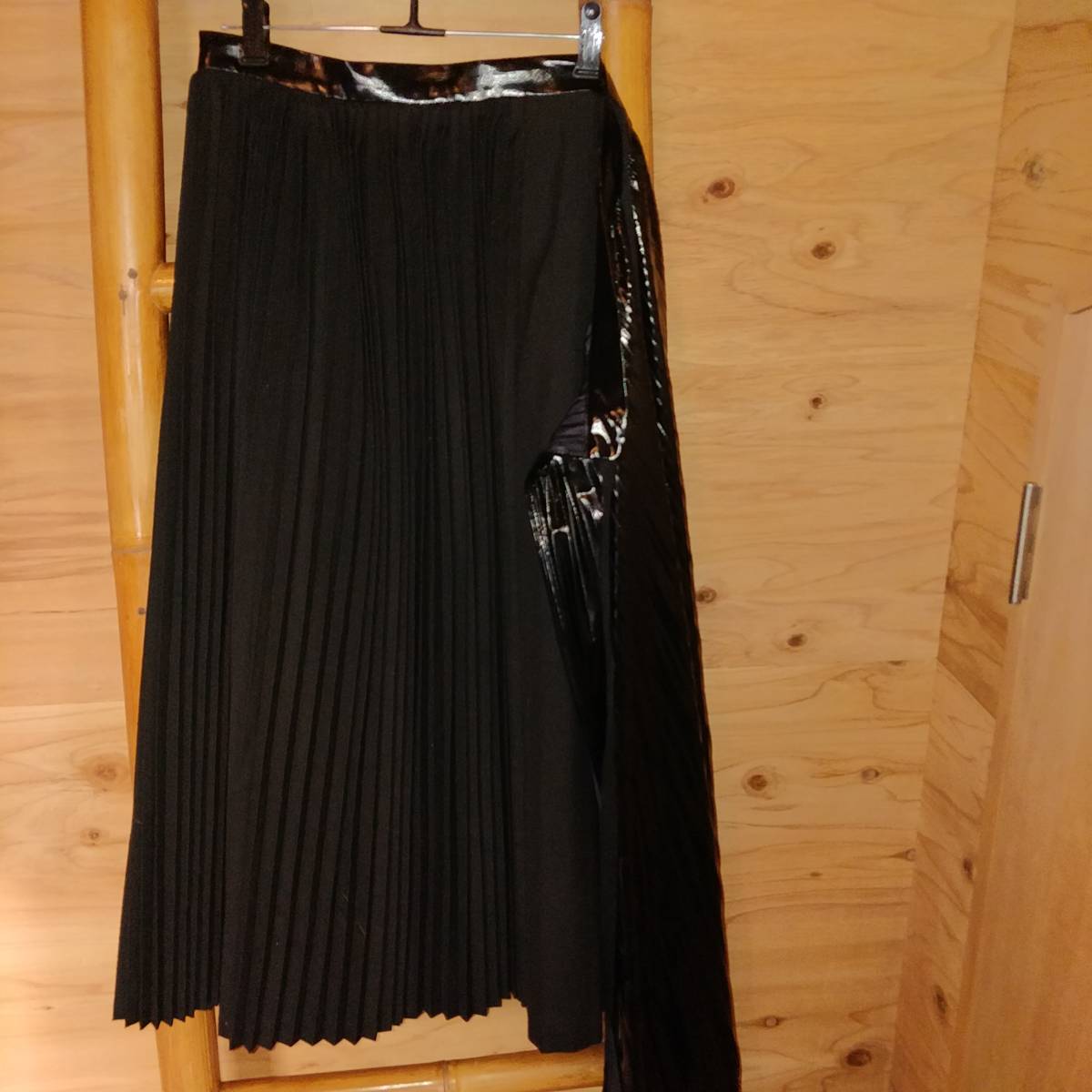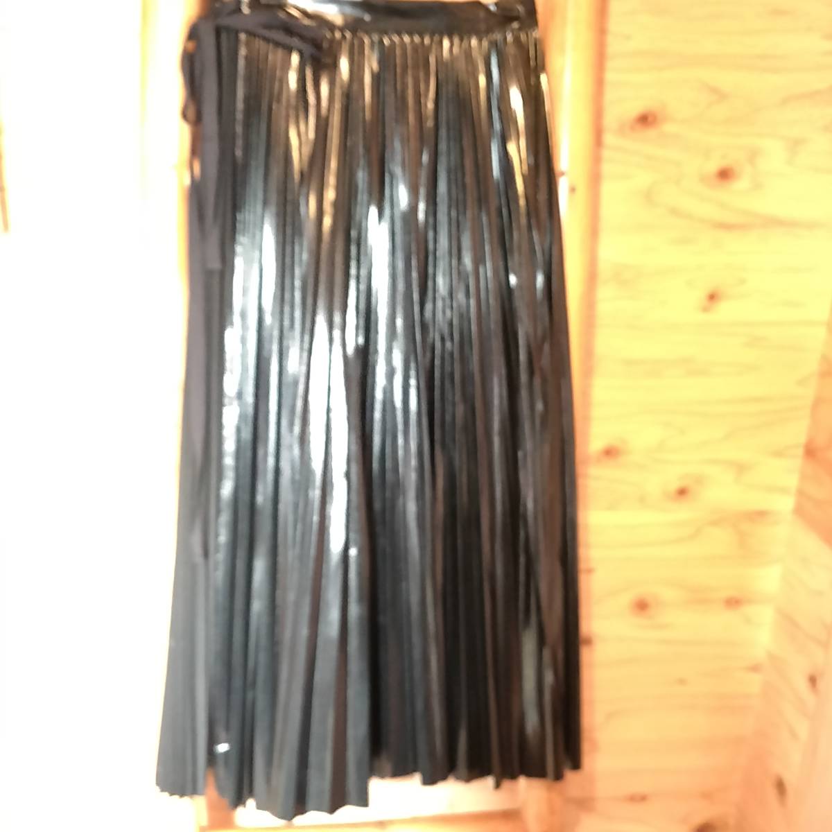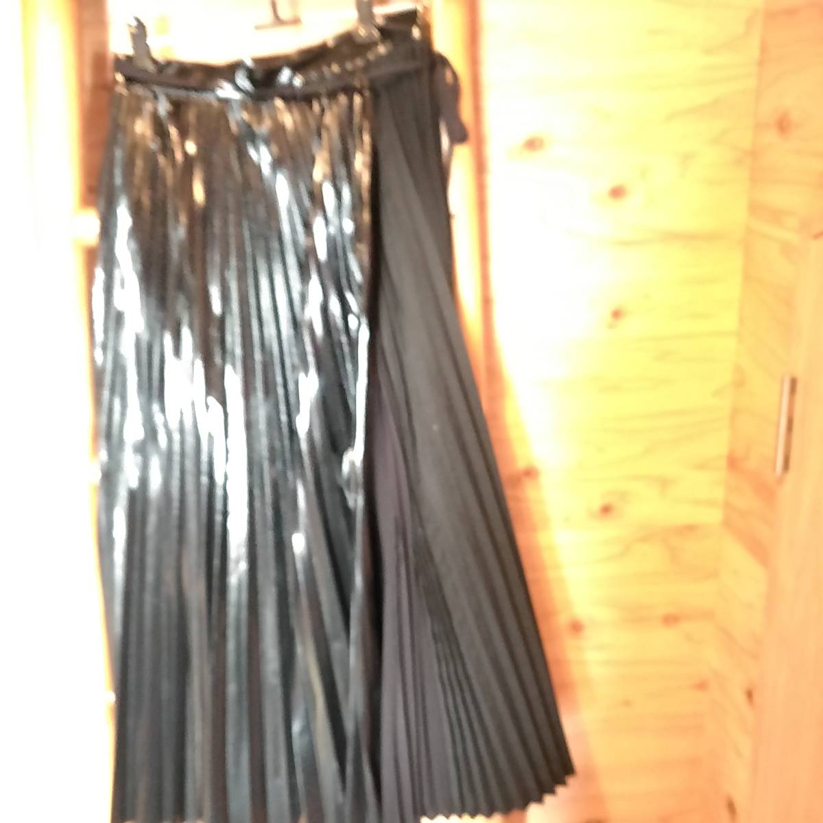 • レイヤードラッププリーツスカート レザー風 laque シャイニ