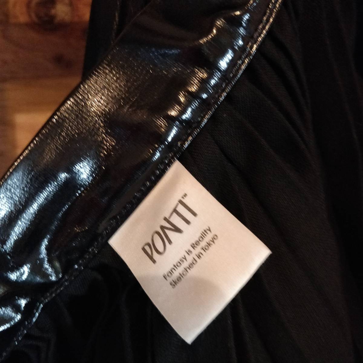 PONTI レイヤードラッププリーツスカート レザー風 シャイニ wet look laque