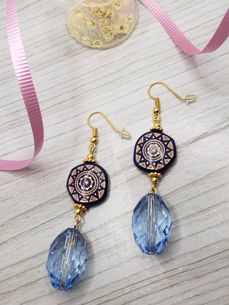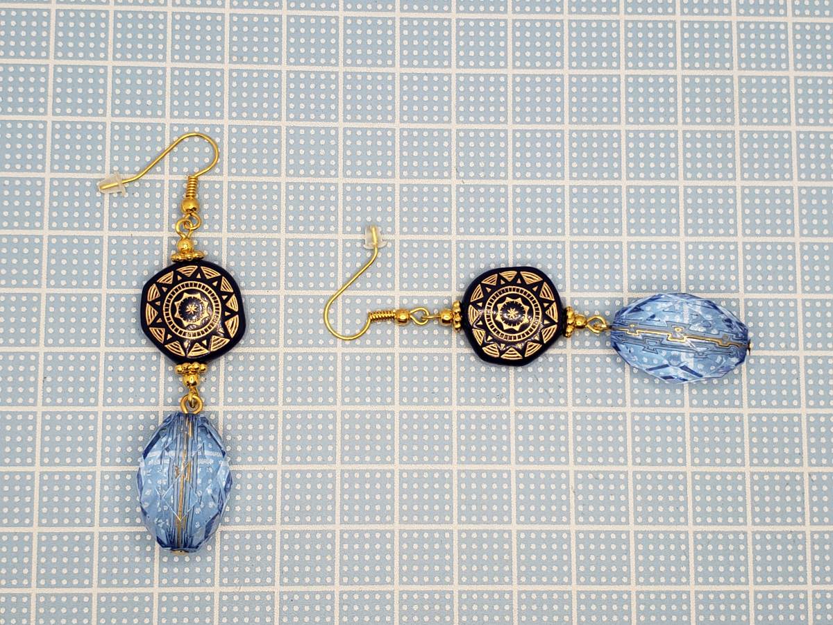 ★ハンドメイド イヤリングorピアス 691 樹脂フック・バネ(クリップ)式イヤリング金具など変更無料 アンティーク 多面カット★