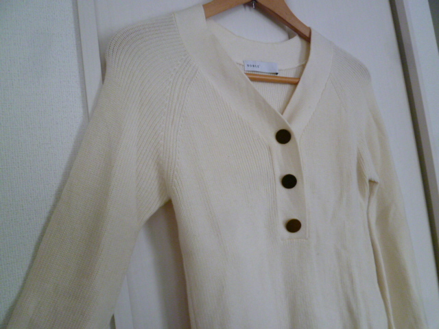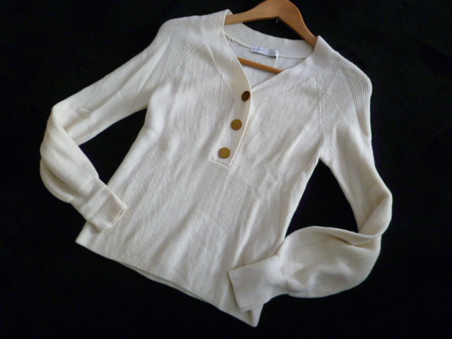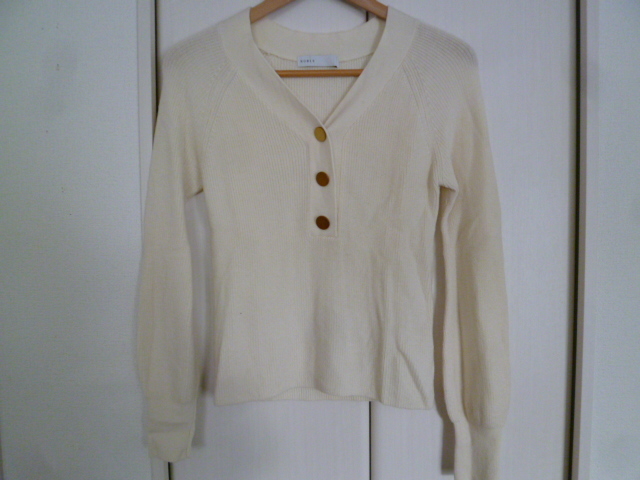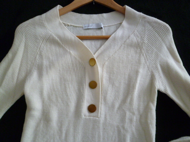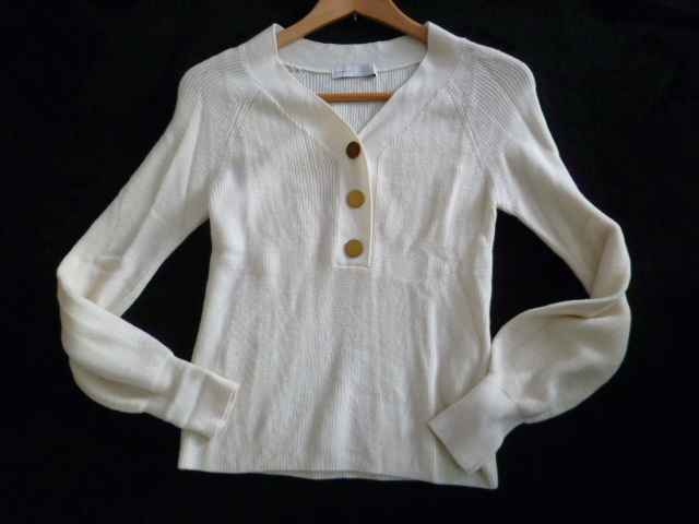 NOBLE/ノーブル△アイボリーゴールドボタンヘンリーニットセーター/バルーン袖ウールフレームワークス長袖トップス△② ST119