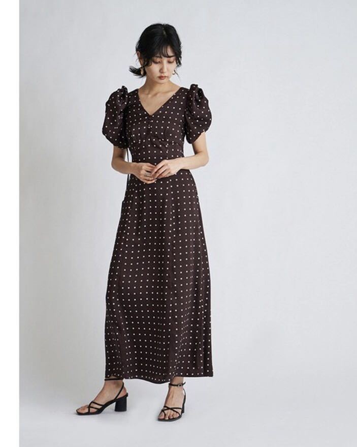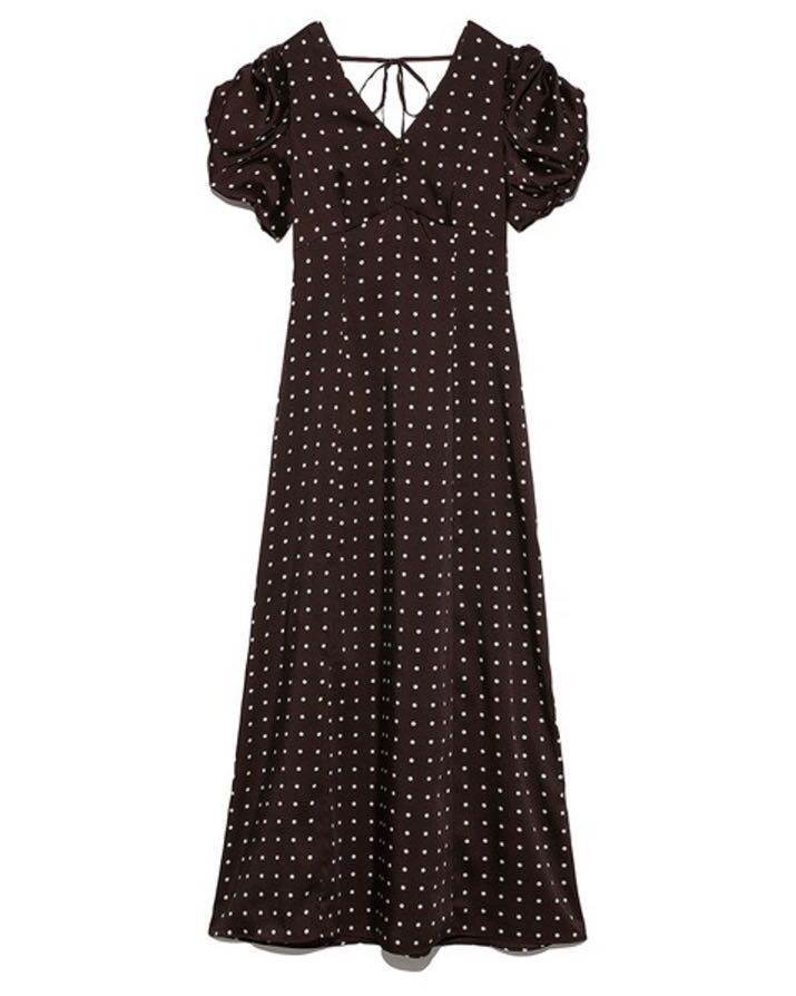 【美しいナローシルエットと構築的なパフスリーブが魅力のプリントワンピース】