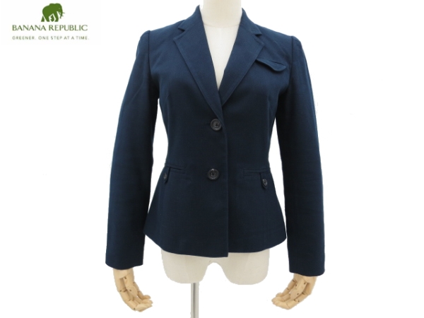 L340★美品★バナナリパブリック★ネイビーシルク混ジャケット 2