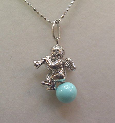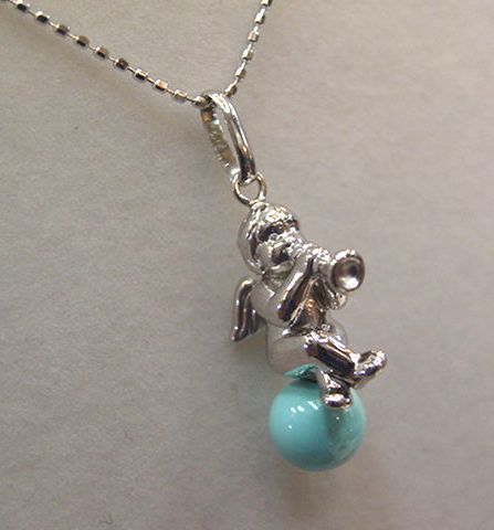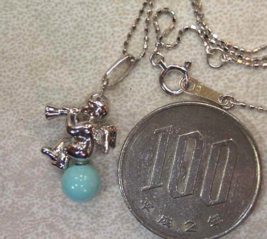 ♪綺麗な色の天然トルコ石の玉に乗り、幸せを呼ぶ笛を吹く可愛い天使!【K18WG】製! ネックレスは【Pt850製:カットボール・0.8㎜径・45cmフリーサイズ】が付いています。ネックレスは外せますので他のペンダントにも使えます。 【総重量=約2.8g。バチカンを含む縦巾=24.31mm・横巾=12.60mm・トルコ石=6.0径】*新品・未使用・本物。 【送料・消費税・システム料・すべて無料!!】 ●注意●この商品は、他のサイトでも出品中ですので、万が一、そちらで落札された場合は、お譲り出来ないことをご了承下さい。 ***【商品代金について】 消費税・システム使用料・落札手数料・送料すべて込みです。 【お届けについて】 すべての商品の送料込みの値段です。 (1万円以上の商品はヤマト便・手渡し。1万円未満は配達記録郵便です。) 【ご返品について】 万が一、お届け商品が偽物・欠陥品・不良品のみ商品のお届け日から3日以内 の場合は、まず電話かメールでご連絡頂いた上で返品をお受けします。 ご落札者様のご都合(イメージが違う・入札商品、入札価格の入れ間違い)での ご返品の場合は、落札手数料及びシステム使用料・送料をご負担頂きます。 また、事前にご連絡の無い場合・4日以上経過しての返品・使用後の返品・ サイズ直し後のご返品は、一切お受け出来ませんのでご理解下さい。 【キャンセルの場合】 ご落札後のキャンセルは、ヤフー評価システムにより自動的に【悪い評価】が ご落札者に付いてしまいます。ご理解の上のご入札・ご落札をお願いします。