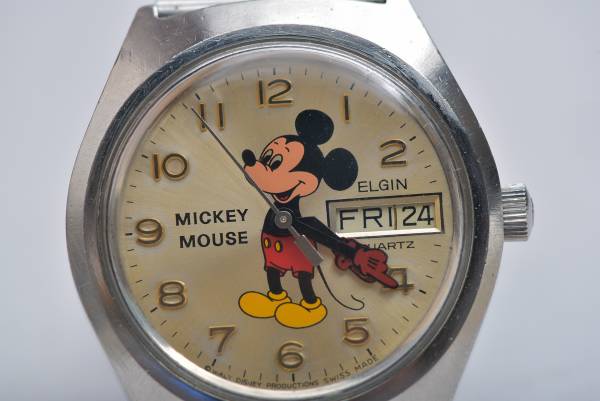 ●貴重●ELGIN●72'●ミッキーマウス クォーツ腕時計●カレンダー付●