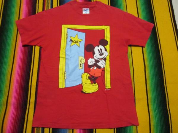 アーリーアメリカン ミッキーマウスのノスタルジックな表情のマルチカラーグラフィックデザイン、オープンドアーで腕組みのウェルカムポーズ、 生産数が非常に少ない希少グラフィック ビンテージ オリジナル