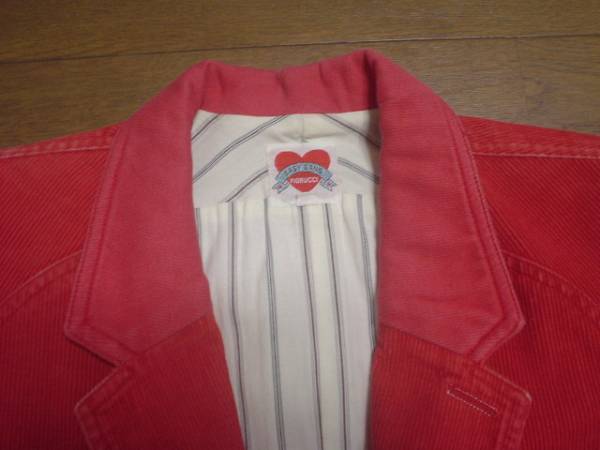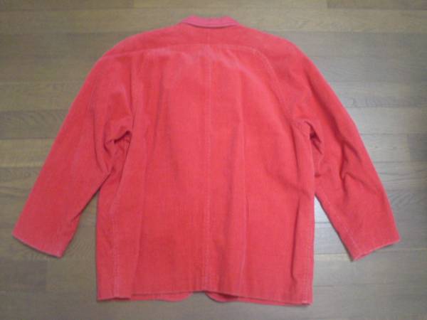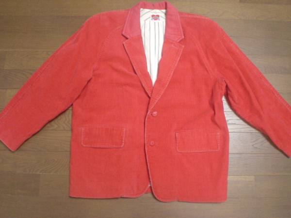赤のコーディロイ ジャケット Lサイズ USED フィオリッチ生地:綿100%裏地あり平置きで、丈(襟下~裾まで)約69センチ、肩幅 約45センチ、袖丈 約55センチ、身幅 約53センチ