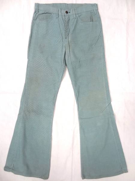ビンテージ LEVIS リーバイス 70S レア 品番 663 コーデュロイ ベルボトム フレア パンツ タロン 白タブ ライト グリーン カラー 淡 緑 色