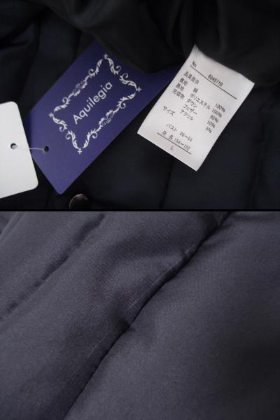 未使用訳あり◆Aquilegia◆シルク 高級ダウンコート ネイビー L