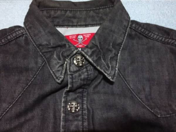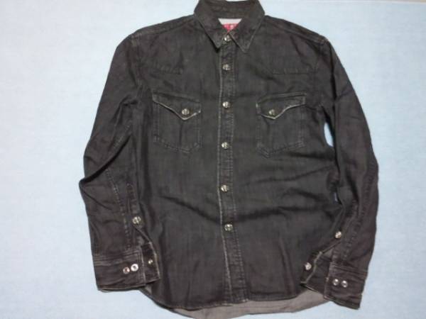 クリームソーダデニムワークシャツ ユーズド加工 サイズタグ欠落 着丈約75cm 肩幅約50cm 脇幅約56cm 計測に個人差がありますので御了承下さい