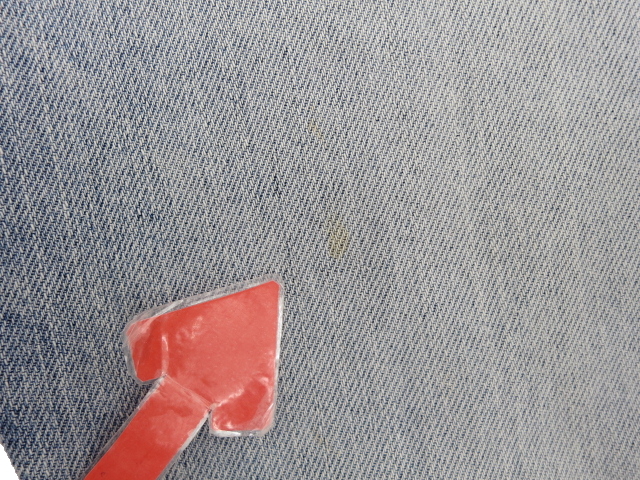 多少の使用感(両スソにコスレ&糸ホツレ・両モモ辺りに小さな汚れ)が見られます。