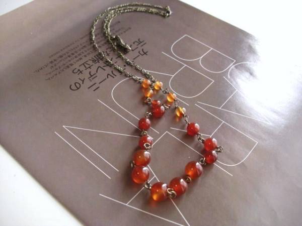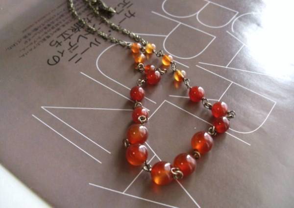 特 別な一日・・シリーズです♪秋色・カーネリアン・・シックなカーネリアンのネックレスです♪パリ(??)っぽいアンティークな雰囲気で作りまし た。6ミリ、8ミリ、10ミリの丸玉のカーネリアンにデザインチェーンを合わせました♪長さは全長77センチ位です♪ブレスレットにされても素敵です♪お揃いのネックレスやブレスレットも出品しています♪シ ンプルで飽きのこないいつまでも着けられるデザインを考えて作りました!ハンドメイドをご理解頂いてノークレーム、ノーリターンでお願いします