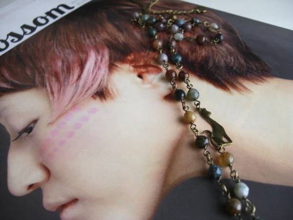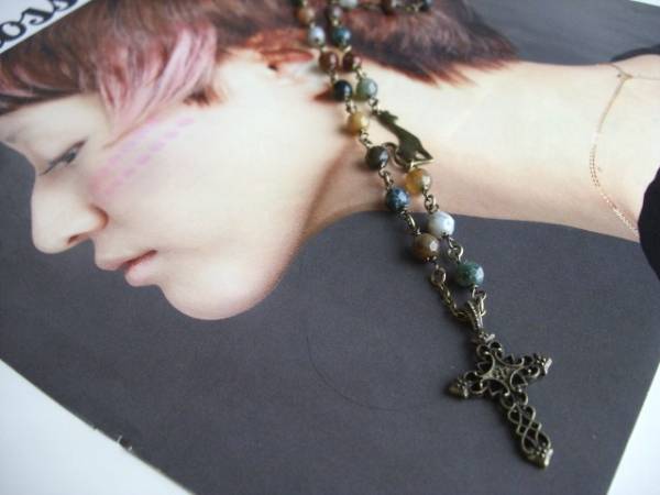 女の子の時間・・シリーズです♪小さな猫とクロスと・・シックなインディアンアゲートのネックレスです♪落ち着いた色合いのインディアンアゲートに小さな猫やクロスのチャームを合わせてノスタルジックな表情です♪♪インディアンアゲートは6ミリのランダムカットです♪トップのクロスは37×20ミリ位です♪長さは84センチ+アジャスター10センチで最長94センチ位です♪お揃いのブレスレットも出品しています♪シンプルで飽きのこないいつまでも着けられるデザインを考えて作りました!ハンドメイドをご理解頂いてノークレーム、ノーリターンでお願いし ます