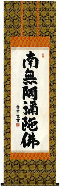 | 作品名: | 価値あるご名号をコンパクトサイズにして、 長くお使いいだける様、高級桐箱に入れてお届けいたします。 最近の住宅事情に合わせて、 床間が190cm位の短くて少し狭い所にぴったり合うように作られている、希少な掛け軸です。 一度、床の間を計っていただいてから、ご検討ください。 掛軸が約161cm、風鎮(約20cm)をかけていただいて、ちょうど床の間から5cm前後浮く感じで、非常に見栄えがします。 法要など仏事にお使い頂ける、仏表装をしております。 『 六字名号 』 H4-501 |
