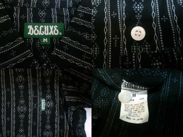 美品 DELUXE 半袖シャツ 総柄 デラックス Mサイズ ■ DLX 刺繍 HUE ブラック 黒 半袖 シャツ 総柄