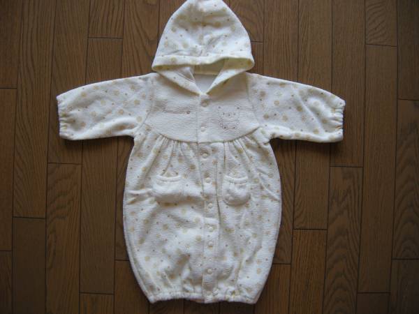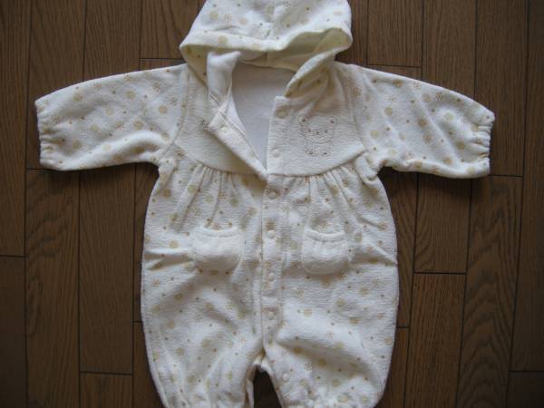 【新品】起毛長袖熊柄フード付カバーオール 50-60 茶