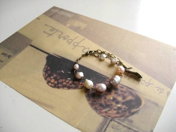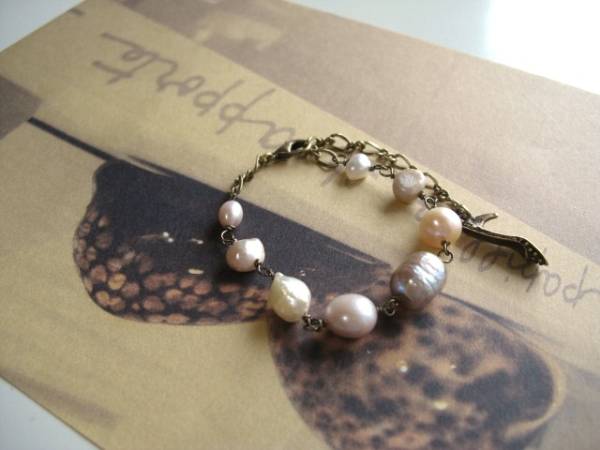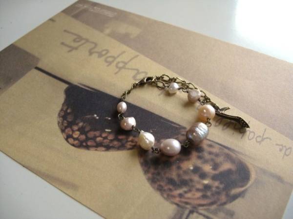 モードな秋色・・シリーズです♪バロックに恋して・・個性的なバロックの淡水パールのブレスレットです♪6ミリから13ミリ位までのベージュピンク、モーブピンク、ナチュラルオレンジやパープルピンクなど表情の違う淡水パールにデザインチェーンを合わせてアンティーク・モダンしています♪長さは全長23センチ位で調節自由です♪お揃いのネックレスも出品しています♪シンプルで飽きのこないいつまでも着けられるデザインを考えて作りました!ハンドメイドをご理解頂いてノークレーム、ノーリターンでお願いします