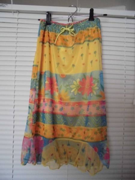 ☆表地はレース生地で透けますが、濃いめの黄色の裏地がついています。涼しげなスカートです。