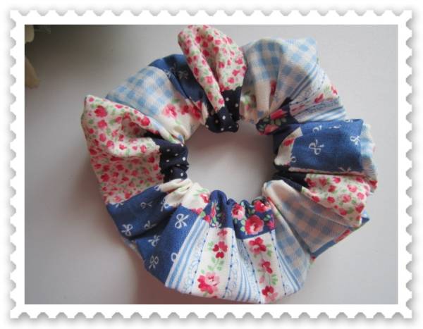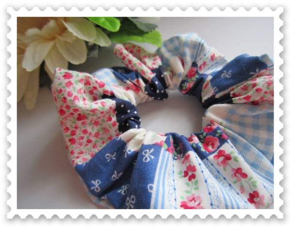 ★シュシュ★☆可愛いパッチ柄☆森ガール☆ネイビー系☆