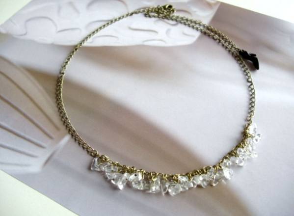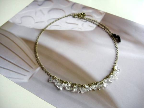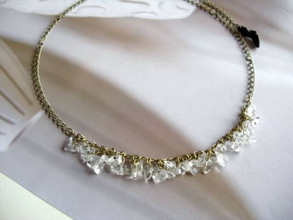 アンティーク仕様・・シリーズです♪神秘的な水晶・・繊細な水晶のネックレスです♪さざれの水晶にデザインチェーンを合わせてクラシカルな表情です♪4ミリから7ミリ位までの水晶のさざれは華奢なチェーンを合わせました♪長さは全長65センチ位で調節自由です♪お揃いのネックレスやブレスレットやピアスも出品しています♪シンプルで長く着けていただけるデザインを考えて作りました!ハンドメイドをご理解頂いてノークレーム、ノーリターンでお願いします