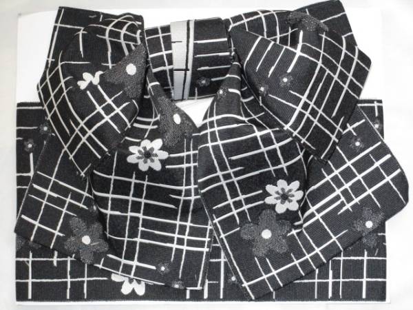 新品即決!女性浴衣用、地紋柄結び帯11-003 くろ