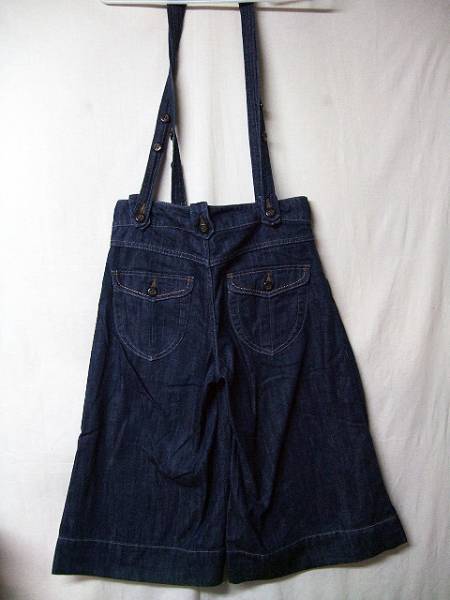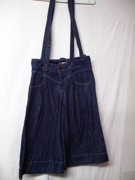 archives デニムサロペットです。ガーリーで可愛らしいアイテムです。綿100%◆表記サイズ…M 実寸サイズ…ウエスト約70cm 股下約42cm 腿幅約30.5cm 裾幅約34cm◆USEDですが濃紺、状態良好です。◆