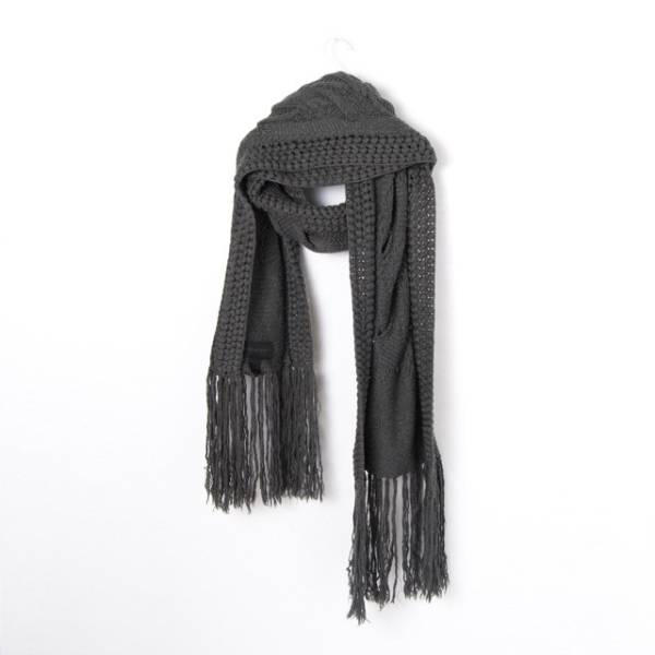 プレイスドバイギデオンのビッグマフラーです。ニットのデザインに定評のあるブランドですのでマフラーを中心としたスタイルを組んでいただけます。ユニセックスでお召になられてください。