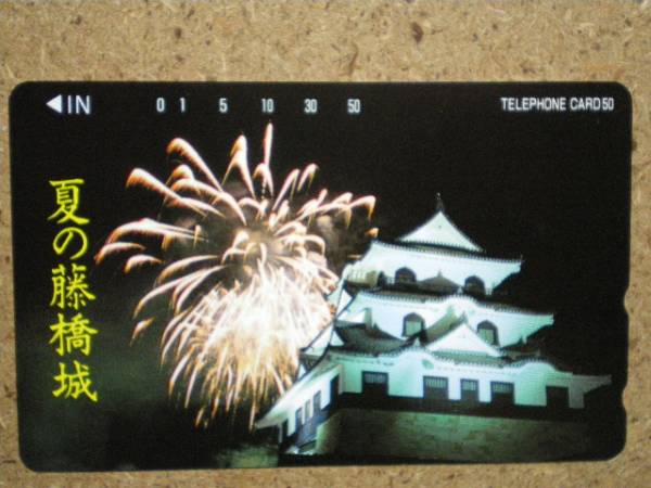 siro/290-17865 お城 藤橋城 花火 テレカ