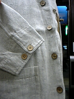 ラフカジュアルな カバナジャケット です。生地は ナチュラルアイボリー色地 に モスベージュのミックス地です。素材は 軽くて 着心地良い インド綿 100% です。 サイズは 肩幅 52cm 着丈 80cm 身幅(脇下) 66cm 身幅(胴回幅) 62cm  袖丈(上肩先より) 61cm トップ衿 9cmです。以上 L サイズ表示です。そして、サイズ数値でお判りの様に大きめ故 LL サイズ 着用の方もOKです。今回の出品中のカバナジャケットは微妙に大きさの違いがありますので 念のため各部分のサイズ数値を必ず御確認下さい。 勿論 新品です。ただ 着込んで着用するラフ感覚のジャケットで ラフなつくりですのでジャンク扱い商品です。尚 毎週木曜日は業務定休日で御座います。ご連絡、ご発送とも木曜明けの金曜日にずれ込む事 ご了承下さい。宜しくお願い申し上げます。