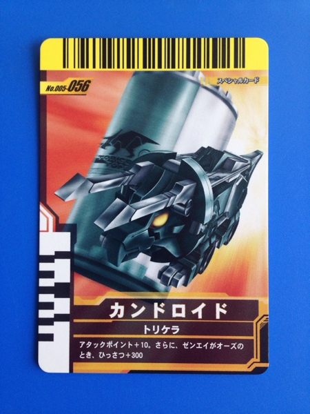仮面ライダー、ガンバライドの第005弾から、スペシャルカード、No.056《カンドロイド・トリケラ》の登場です。発送は、普通郵便を利用します。(特にご希望のない場合)おとりまとめも可能ですが、送料に変動する場合がございます。また、送料のご請求は、自宅での計量を基準にご請求させていただいておりますので、実際の金額と差異が出る場合もございます。予めご了承ください。他にも多数出品中です。まとめてこの機会にいかがでしょうか?ご質問お待ちしております。