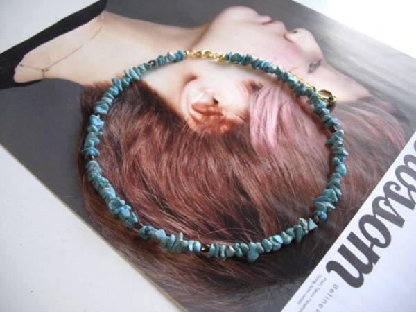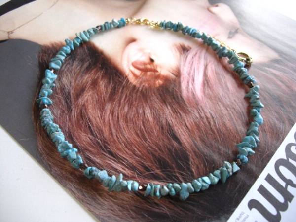 ニューヨーク・テイスト・・シリーズです♪春色・レシピ・・シックなブルーグリーンのターコイズのネックレスです♪さざれのターコイズにチェコビーズを合わせてキュートな表情です♪6ミリから9ミリ位のさざれのターコイズはチェコビーズを合わせてシンプルでスタイリッシュな表情です♪長さは40センチ+アジャスター10センチで最長50センチ位です♪お揃いのネックレスやブレスレットやピアスも出品しています♪シンプルで長く着けていただけるデザインを考えて作りました♪ハンドメイドをご理解頂いてノークレーム、ノーリターンでお願いします