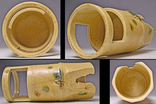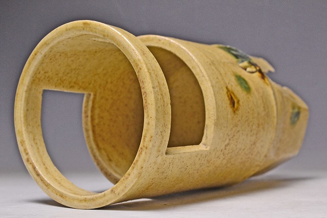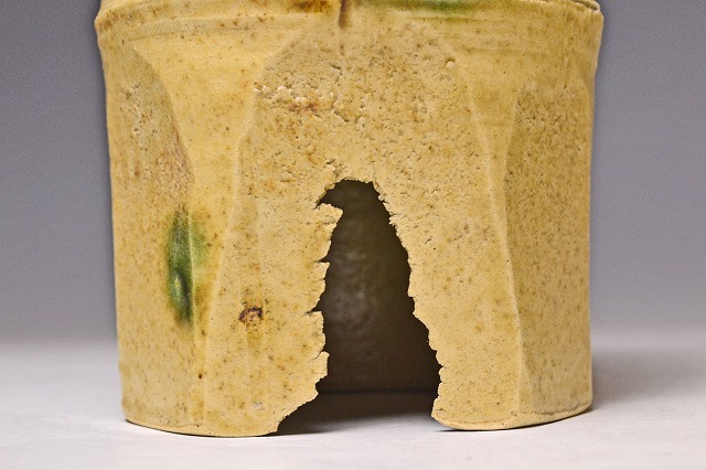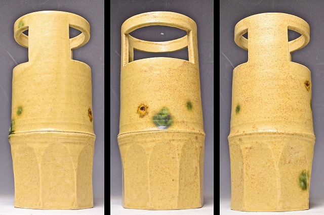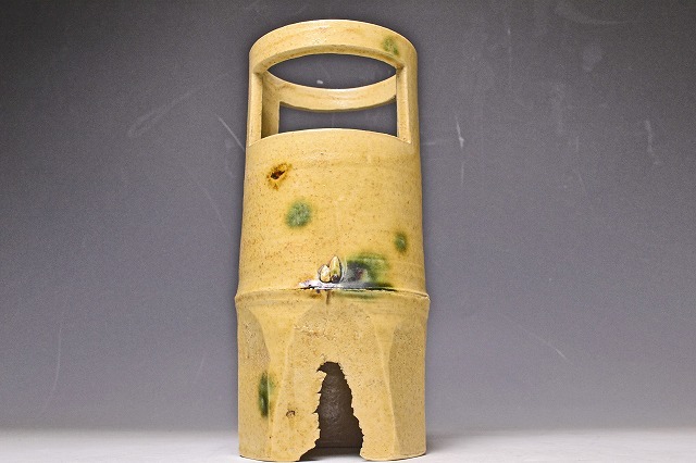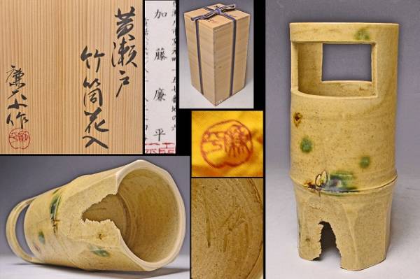 サイズは 114mmx高さ243mm です。 瀬戸市の無形文化財保持者の 加藤廉平 氏の 美しい黄瀬戸の 発色がすばらしい 竹形の花入 です。黄 瀬戸のお約束の 胆礬とコゲも みられます。写真を参考の上入札ください。宅配便80サイズにて発送します。他にも多数出品してます。同梱対応いたしま す。