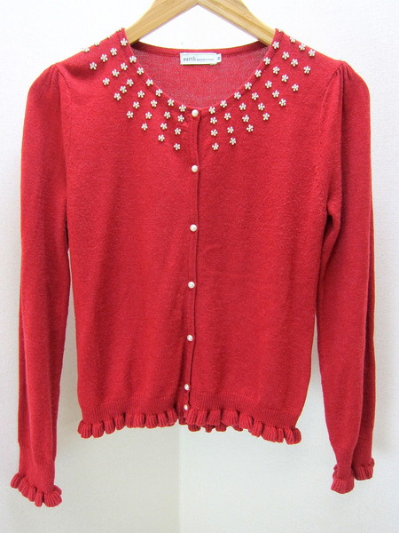 商品詳細 アースミュージック&エコロジーの赤ニットカーディガン。
