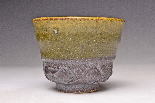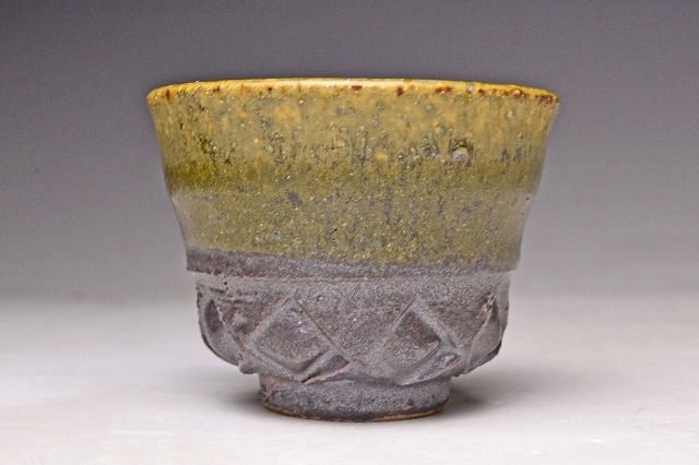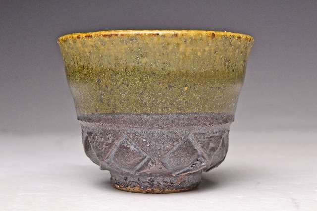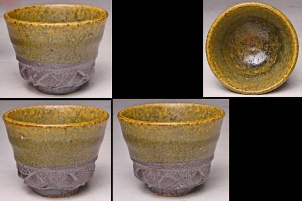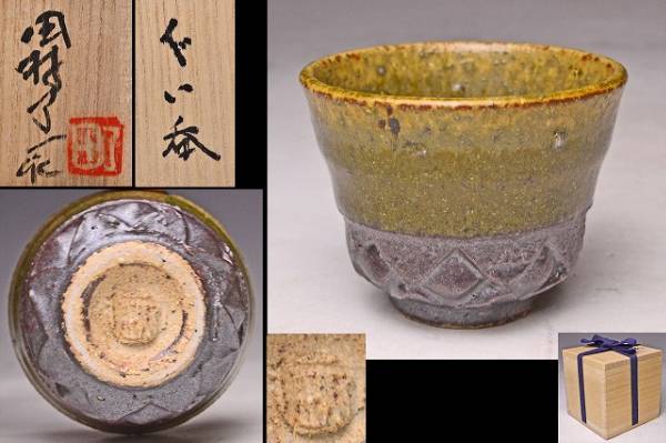 サイズは 72mmx高さ56mm です。 人間国宝 田村耕一 氏を 父に持つ 名工 田村了一 氏作の 灰釉 菱陽刻 ぐい呑 です。 偉大な父の作風 を 模倣するのでは無く 独自の 意匠 で 作陶された 逸品です。 写真を参考の上 入札下さい。 宅配便60サイズにて 発送します。他にも多数出品してます。同梱対応いたします。