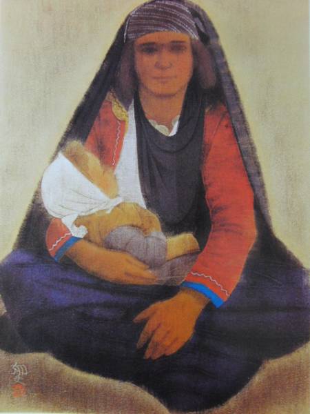 平山郁夫、アラブの母子、画版・限定、落款・版上サイン入、額付