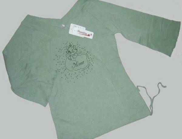 タグ付き・未使用◆limpidite/綿100%7分袖Vネックニットトレーナー/緑系M/長期保管品