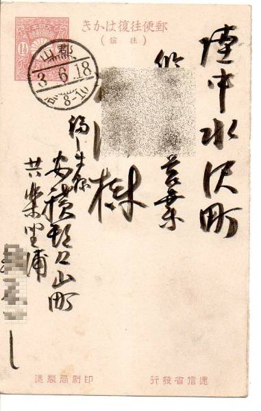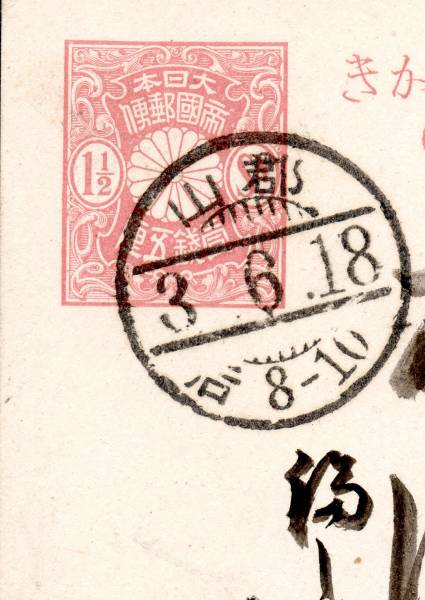 t0733★分銅往信「郡山3.6.18」櫛形印