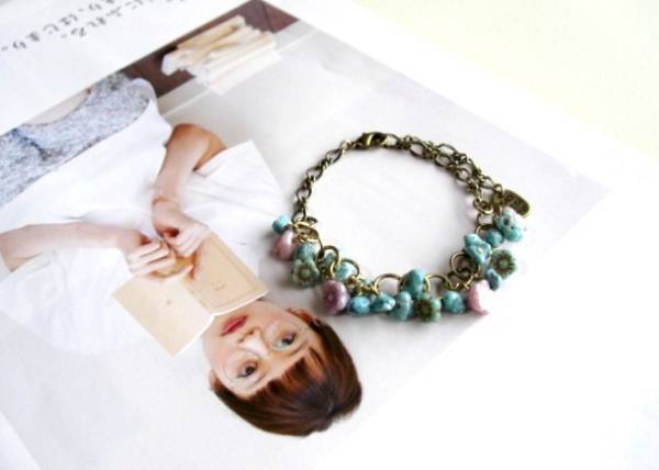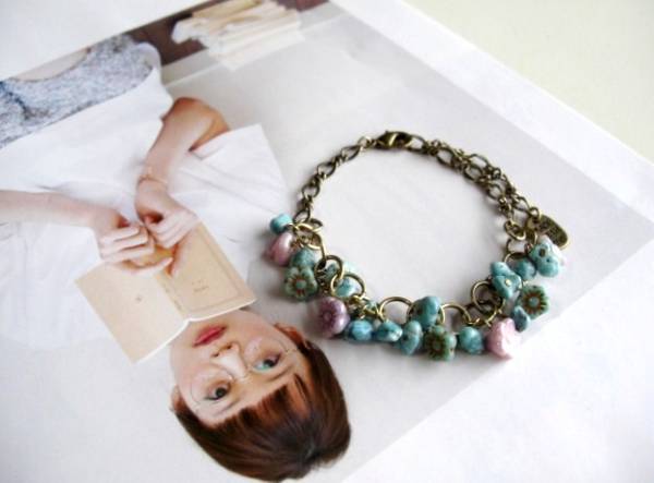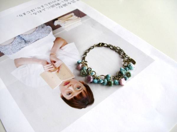 クレアの衣装箱・・シリーズです♪ターコイズとお花と・・繊細でやさしい雰囲気のターコイズのブレスレットです♪さざれのターコイズをチェコのお花でおめかししてロマンチックな表情です♪6ミリから7ミリ位のさざれのターコイズにはダークパープルやパープルピンクやターコイズ色の8ミリ位のチェコのお花を散らしました♪長さは全長23センチ位で調節自由です♪お揃いのネックレスやイヤリングも出品しています♪シンプルで長く着けていただけるデザインを考えて作りました!ハンドメイドをご理解頂いてノークレーム、ノーリターンでお願いします