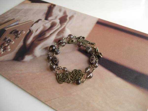 ネオ・ロマンチック・・シリーズです♪モノトーンの薔薇・・繊細なスモーキークォーツのブレスレット2点セットです♪グレイオニキスやデザイン樹脂や薔薇のチャームを合わせてアンティークな表情です♪真ん中のブレスレットは6ミリの丸玉のスモーキークォーツに7ミリから16ミリ位までのグレイオニキスやデザイン樹脂や薔薇のチャームを合わせました♪長さは全長23センチ位で調節自由です♪右端のブレスレットは6ミリ、8ミリの丸玉のスモーキークォーツに薔薇のチャームを合わせました♪長さは全長23センチ位で調節自由です♪それぞれ単品やネックレスも出品しています♪シンプルで飽きのこないいつまでも着けられるデザインを考えて作りました!ハンドメイドをご理解頂いてノークレーム、ノーリターンでお願いします