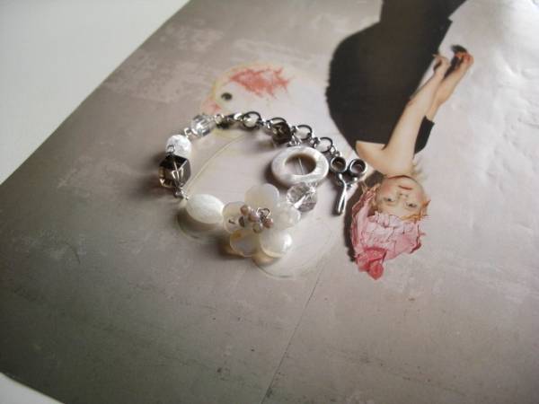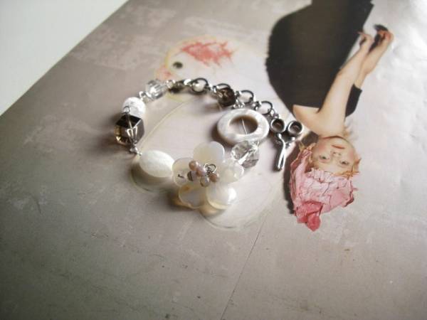 やさしい春色・・シリーズです♪イノセント気分・・繊細なムーンストーン、ボツワナアゲート、スモーキークォーツ、水晶、グレーシェル、ナチュラルアゲート、クラックル水晶など神秘的な石にデザインチェーンを合わせてロマンチックなブレスレットです♪6ミリから26ミリ位までのオーバルやランダムカット、キューブ、リング、フラワーなどデザイン違いです♪長さは全長23センチ位で調節自由です♪お揃いのネックレスも出品しています♪シンプルで飽きのこないいつまでも着けられるデザインを考えて作りました!ハンドメイドをご理解頂いてノークレーム、ノーリターンでお願いします