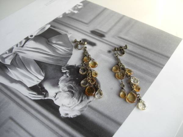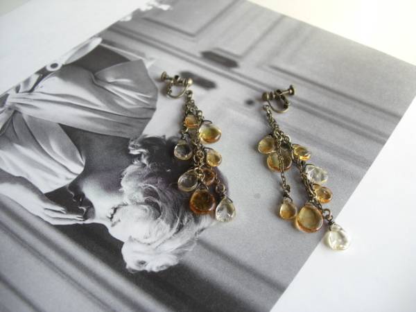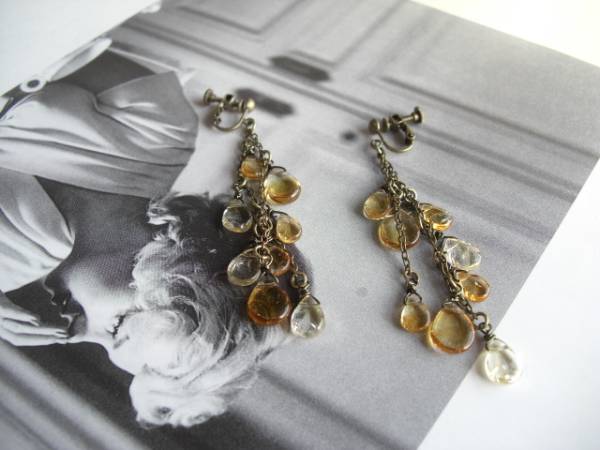 クレアの衣装箱・・シリーズです♪琥珀色の夢・・可憐なシトリンのイヤリングです♪ペアシェイプのシトリンを集めて儚げな表情です♪シトリンは9×6ミリ~11×8ミリのペアシェイプです♪長さは8.5センチ位です♪ピアスにも変更出来ます♪ネックレスやブレスレットも出品しています♪シンプルで飽きのこないいつまでも着けられるデザインを考えて作りました!ハンドメイドをご理解頂いてノークレーム、ノーリターンでお願いします
