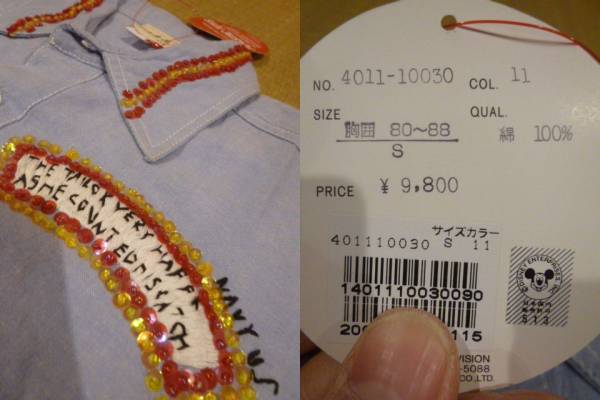 定価9800円  Disney ミッキーマウス 刺繍 長袖 シャツ Sサイズ ディズニー 正規品