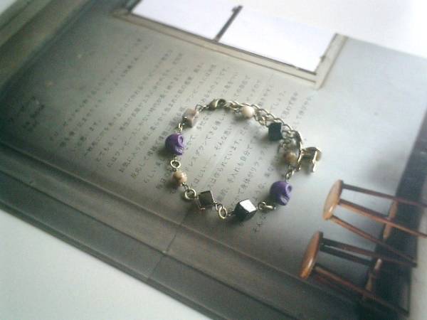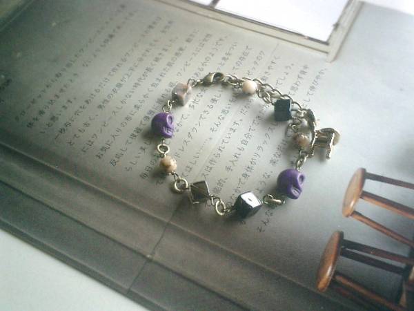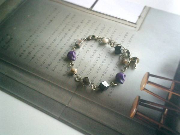 天使の時間・・シリーズです♪都会の髑髏さん・・シックなスモーキークォーツやアフリカンオパールやオニキスやジャスパーにダークパープルの髑髏さんを合わせてスタイリッシュなブレスレットです♪6ミリから9ミリ位の丸玉やキューブのスモーキークォーツやアフリカンオパールやオニキスやジャスパーに9ミリ位のボーンの髑髏さんを合わせました♪長さは全長23センチ位で調節自由です♪お揃いのネックレスやピアスも出品しています♪シンプルで飽きのこないいつまでも着けられるデザインを考えて作りました!ハンドメイドをご理解頂いてノークレーム、ノーリターンでお願いします