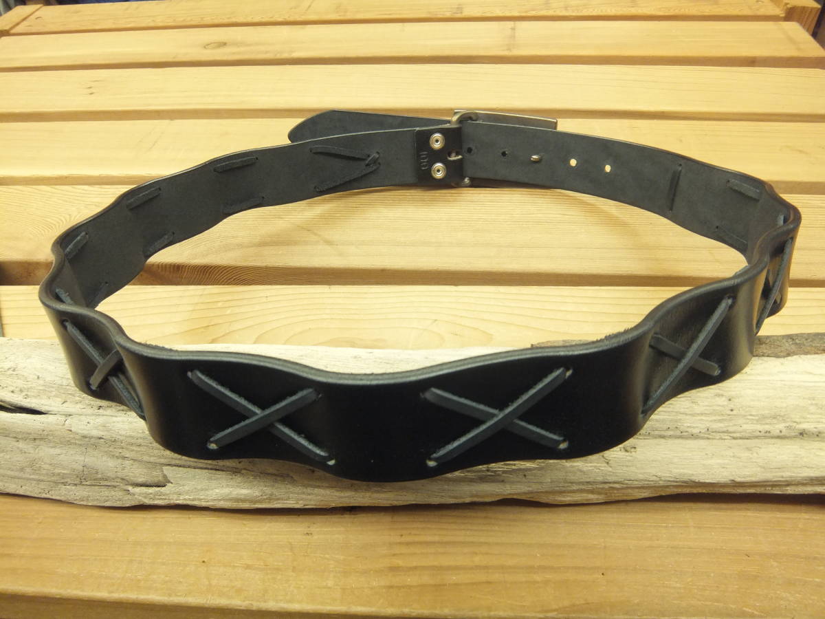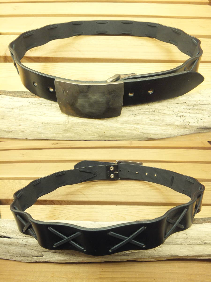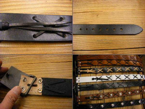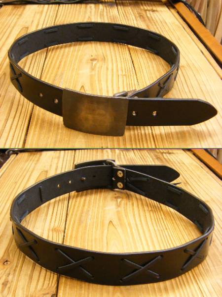 当店オリジナル製作!! クロスレース飾りベルト新品[(黒ベルト)×(黒革ひも)][M=約85cm][バックル2種付き]が送料無料! ※レッドムーン風