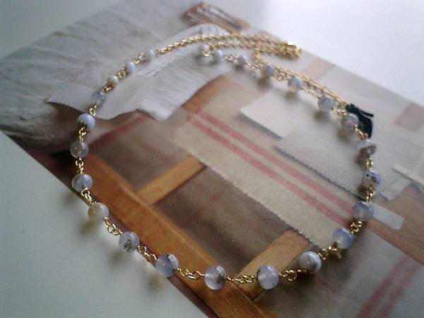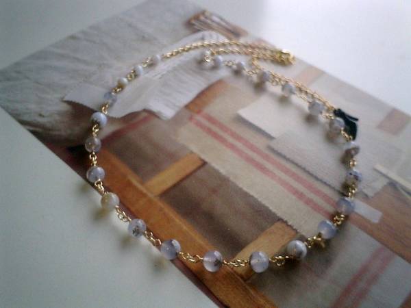 物語を紡いで・・シリーズです♪ブルーレースと黒のヒール・・神秘的なブルーレースと黒のヒールのプラチャームのネックレスです♪可憐なブルーグレーのクォーツに黒のヒールを合わせて遊びを入れた組み合わせです♪ブルーレースは6ミリ、8ミリの丸玉です♪長さは70センチ位で調節自由です♪お揃いのネックレスやブレスレットやピアスも出品しています♪シンプルで飽きのこないいつまでも着けられるデザインを考えて作りました!ハンドメイドをご理解頂いてノークレーム、ノーリターンでお願いします