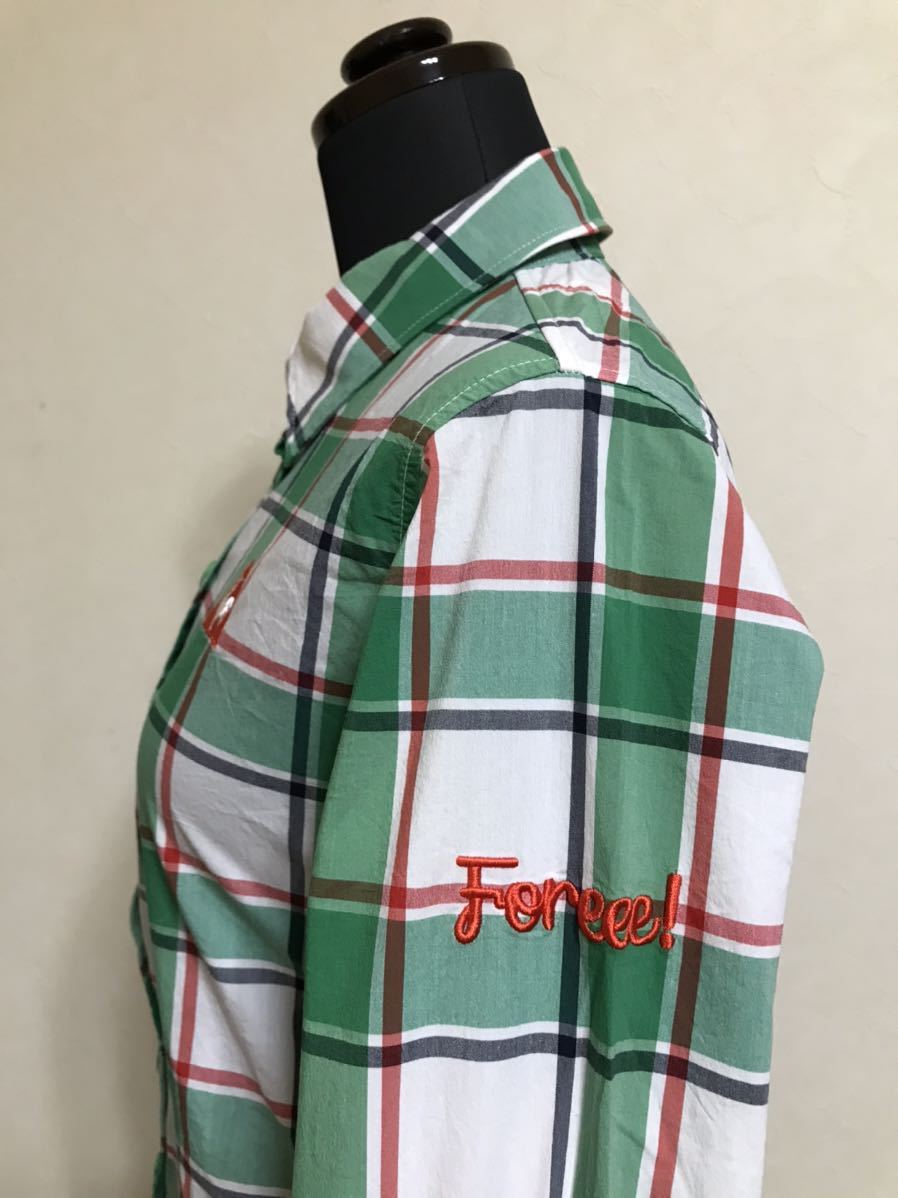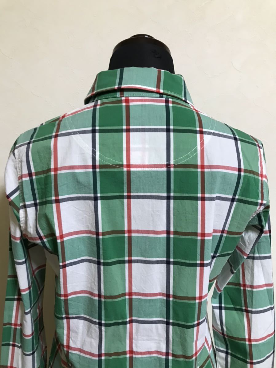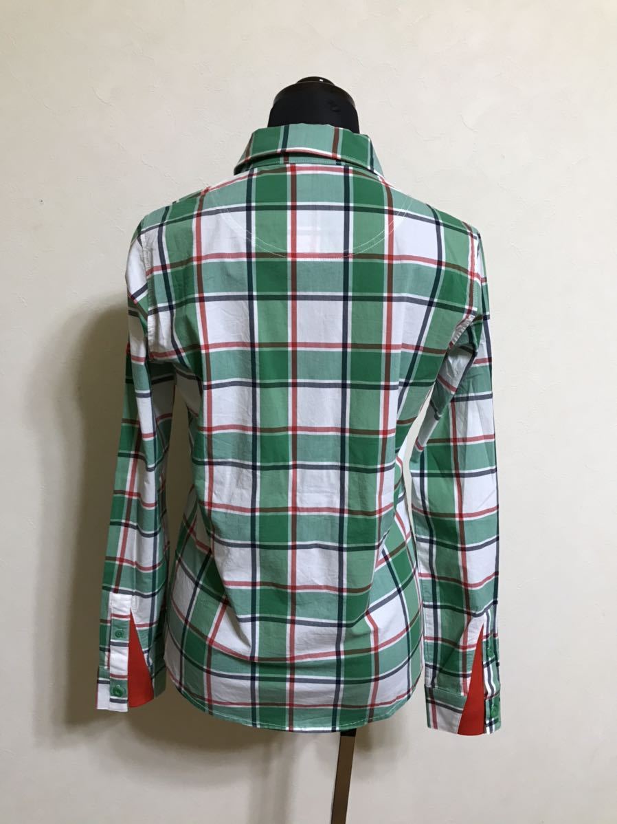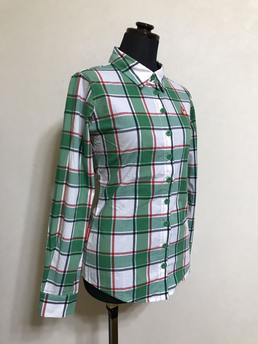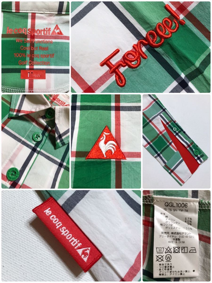 【美品】 le coq sportif golf ルコック ゴルフ レディース チェック柄 シャツ トップス グリーン サイズM 長袖 デサント QGL1006 緑白赤黒