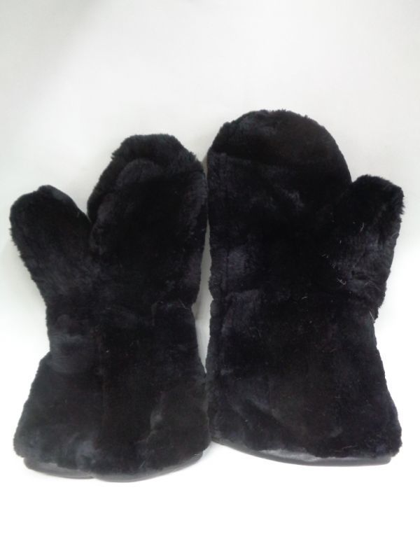 ブラック シェアード・ビーバー毛皮ファー・ミトン 手袋 メンズサイズ L