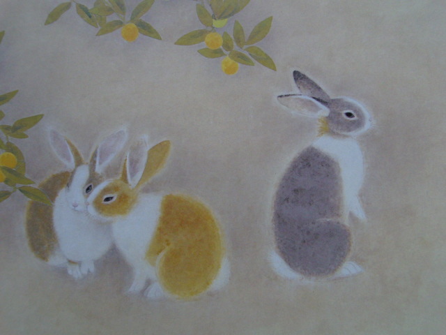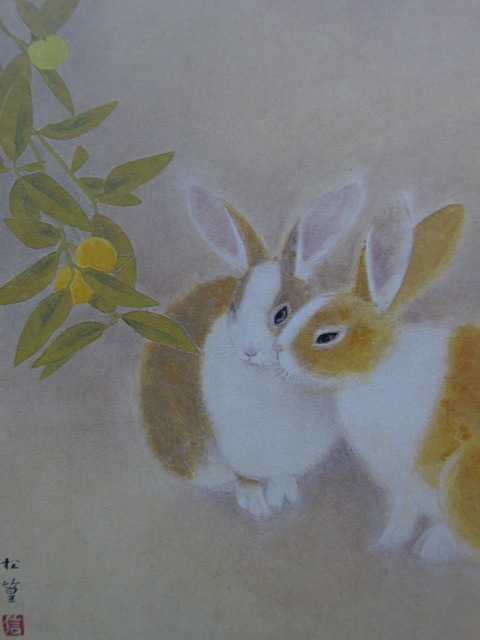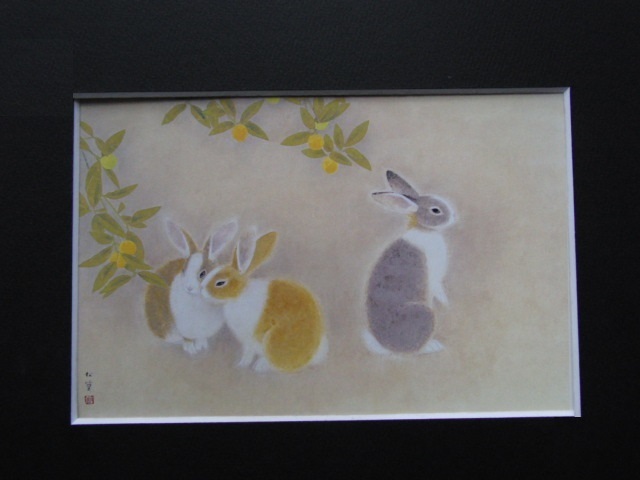 上村松篁、【兎】、希少な額装用画集より、新品額装付、状態良好、送料込み、sca